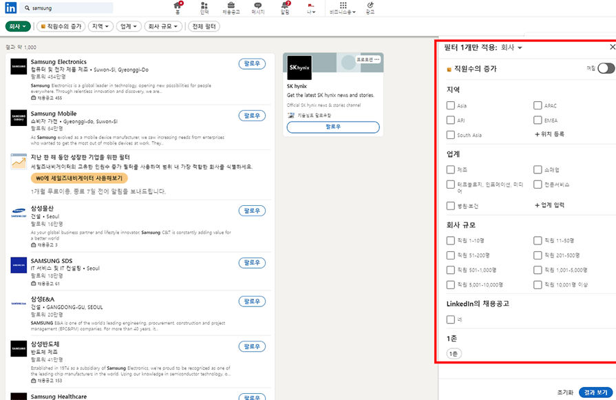B2B 및 B2G 시장에서 링크드인을 통해 기업의 현황과 다양한 정보를 확인할 수 있습니다.