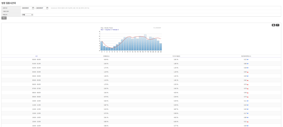웹사이트 행동 데이터를 기반으로 차트를 구성하면 사용자의 전환 특성을 시각적으로 분석할 수 있습니다. 사용자가 주문을 많이 하는 시간대나 요일 등을 빠르게 파악해 특정 시간대에 주문이 몰리거나 특정 요일에 전환율이 높게 나타나는 패턴 등을 확인할 수 있습니다. 이러한 인사이트는 마케팅 캠페인이나 운영 전략을 최적화하는 데 효과적으로 활용될 수 있습니다.