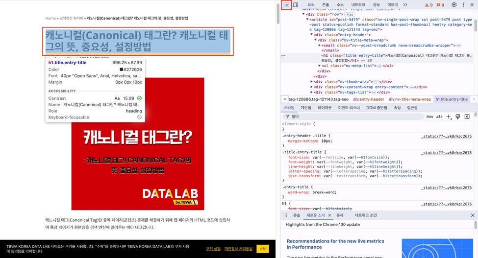 요소란, 태그와 그 안의 내용(텍스트, 다른 태그 등)으로 구성된 html의 기본 단위를 의미합니다. 요소는 <h1>제목</h1>의 형태로 이루어집니다.