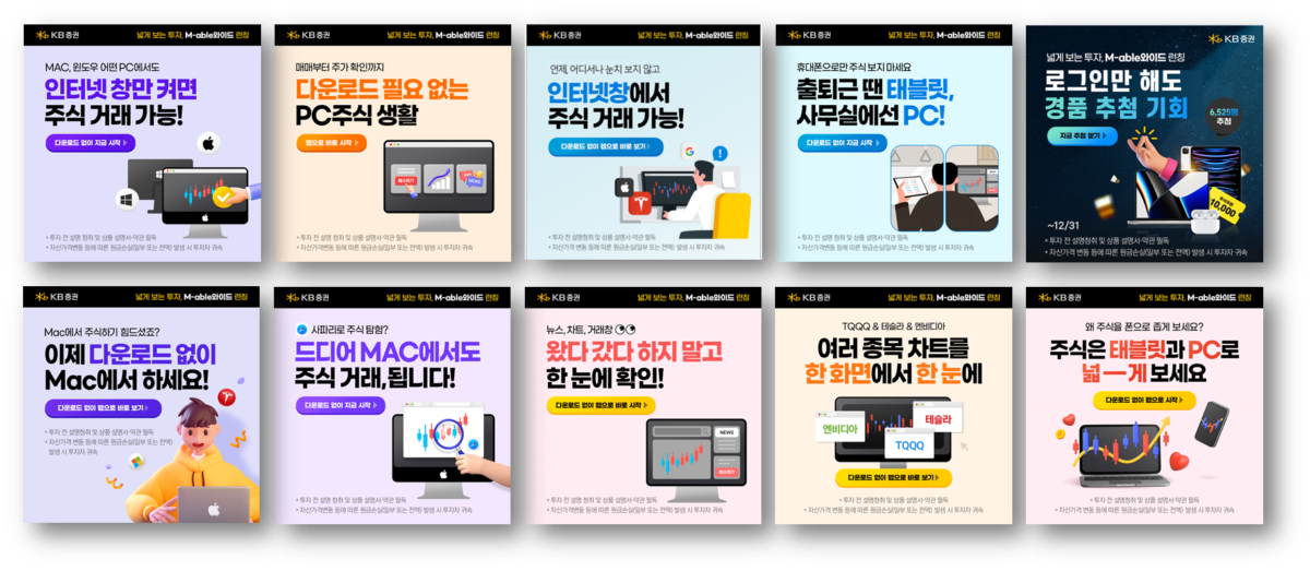특히 ‘M-ABLE(마블) 와이드 론칭 캠페인’은 KB증권과 더크림유니언이 긴밀히 협력해 진행한 프로젝트로 기존의 홈 트레이딩 시스템(HTS) 과는 달리 별도의 설치 없이도 웹 브라우저만으로 국내외 주식 거래가 가능한 혁신이 특징이다. 윈도우, 맥OS 등 모든 운영체제에서 사용 가능해 태블릿 PC에서도 주식거래가 가능하도록 개발된 점 또한 눈여겨볼 만한 부분이다.