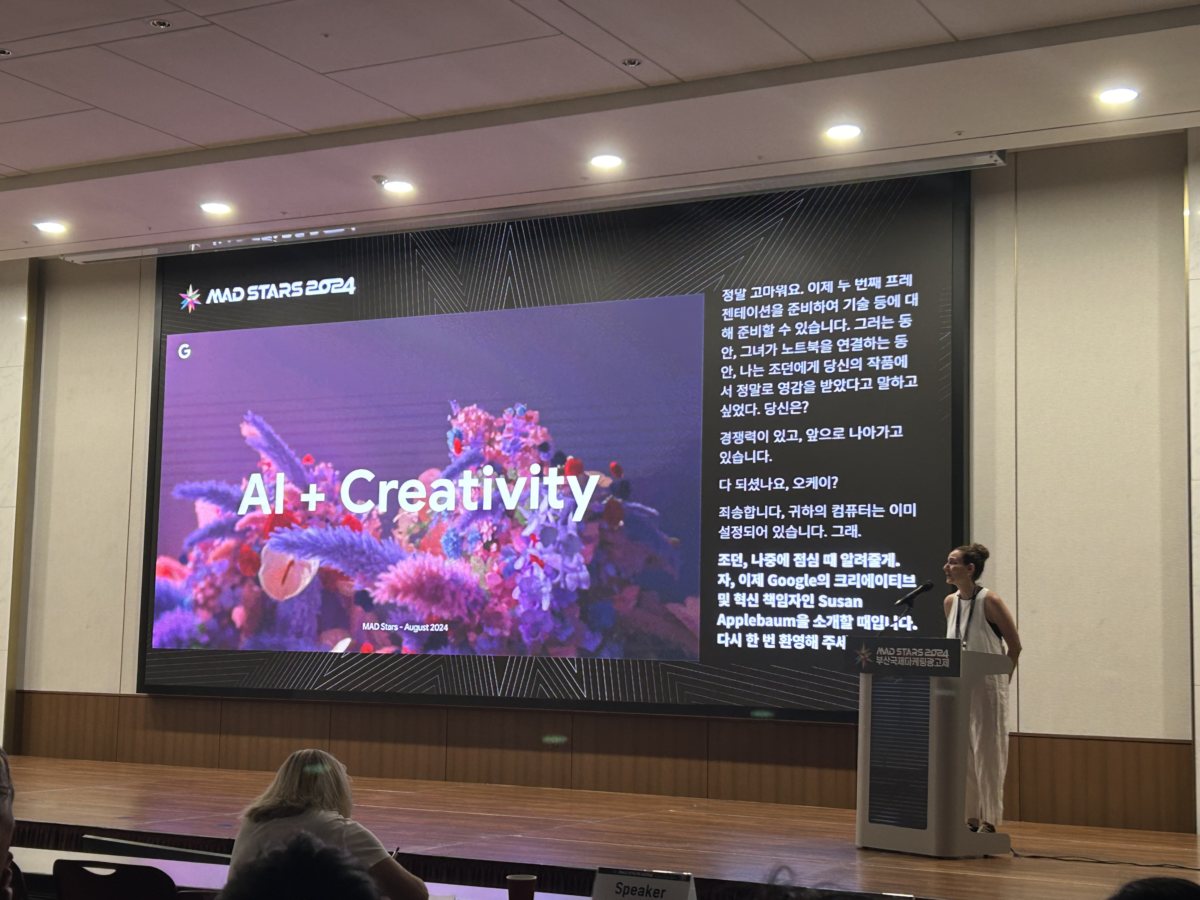 강연의 막바지에 수자나 구글 책임자는 “AI가 나에게 무엇을 해줄 수 있는지를 고민하기 보다는 내가 AI를 통해 무엇을 할 수 있을지 고민하는 태도를 지녀야 한다”고 전하며 계속해서 AI 등 새로운 기술을 통해 발전하기 위해 결코 편리의 영역에 존재하지 않는 도전과 실험적 사고를 멈추지 말 것을 당부했다.