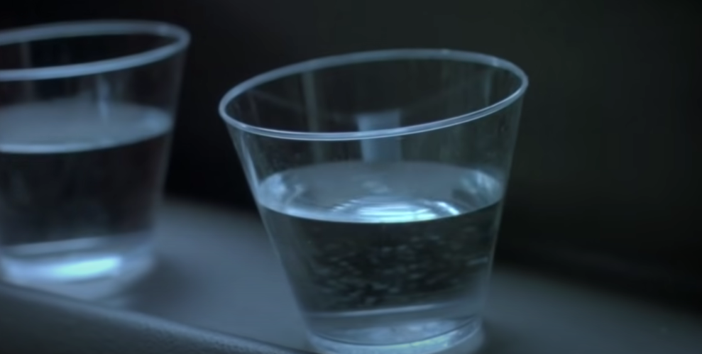 쥬라기 월드 예고편이 잘 만든 예고편의 교과서로 꼽히는 이유는 이를 ‘가장 효과적이면서도 간접적인 방법’으로 표현했기 때문입니다. 쥬라기 월드의 예고편을 보며 사람들이 숨을 죽이기 시작하는 장면은 주인공 일행이 탄 차 안의 컵에 담긴 물과 웅덩이에 고인 물이 정체불명의 발자국이 내는 진동에 흔들리기 시작할 때인데요.