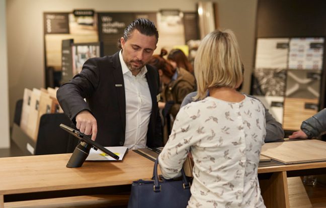 글로벌 가구 업체들은 고객의 효율적인 제품 구매를 돕기 위해 이미 몇 해 전부터 인터랙티브 서비스를 시작했다. 예를 들어 앱을 실행하고 특정 위치에 카메라를 대면 내가 원하는 상품을 가상으로 배치해 볼 수 있는 형태다. 하지만 이러한 서비스는 시각에만 의존해 실제 공간을 추측해야 한다는 한계가 있었다. 이런 가운데 건축&인테리어 분야에 새로운 인터랙티브 기준이 등장했다. 세계적 바닥재(마루) 생산업체로 유명한 독일의 PARADOR사가 디지털 POS 애플리케이션을 개발한 것이다.