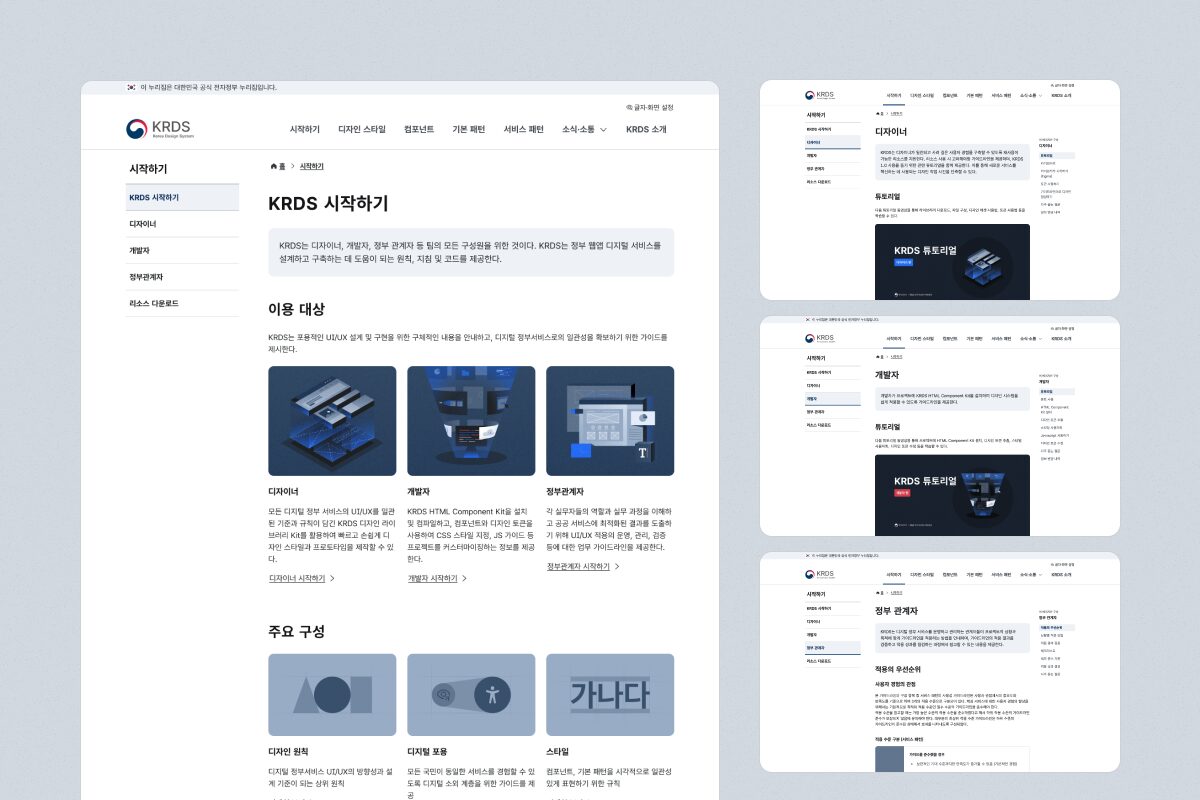 디지털플랫폼정부 구현을 위한 선도과제의 일환으로 추진된 ‘KRDS(KoRea Design System)’ 구축 프로젝트는, 대한민국 공공 웹·앱 전반의 UI/UX를 통일하고 국민 중심의 편리한 디지털 서비스를 제공하기 위해 기획되었습니다. 다양한 기관별로 산발적으로 구축되던 공공 서비스의 사용자 경험을 표준화하고, 접근성과 사용성을 모두 충족하는 범정부 공통 가이드를 마련하고자 했습니다. 특히 고령자, 장애인 등 디지털 취약계층까지 고려하여 누구나 쉽게 이용 가능한 환경을 제공하는 것을 주요 목표로 삼았습니다. 이를 위해 디자인 라이브러리, 디자인 토큰, HTML 컴포넌트 키트 등 체계적인 리소스와 가이드를 개발하고, 이를 통합적으로 관리·확산할 수 있는 공식 웹사이트를 구축했습니다. 본 프로젝트는 정부 디지털 서비스의 품질 향상은 물론, 개발 및 디자인 생산성 향상, 브랜드 신뢰성 강화, 그리고 지속 가능한 디지털 생태계 조성에 기여하고자 합니다.