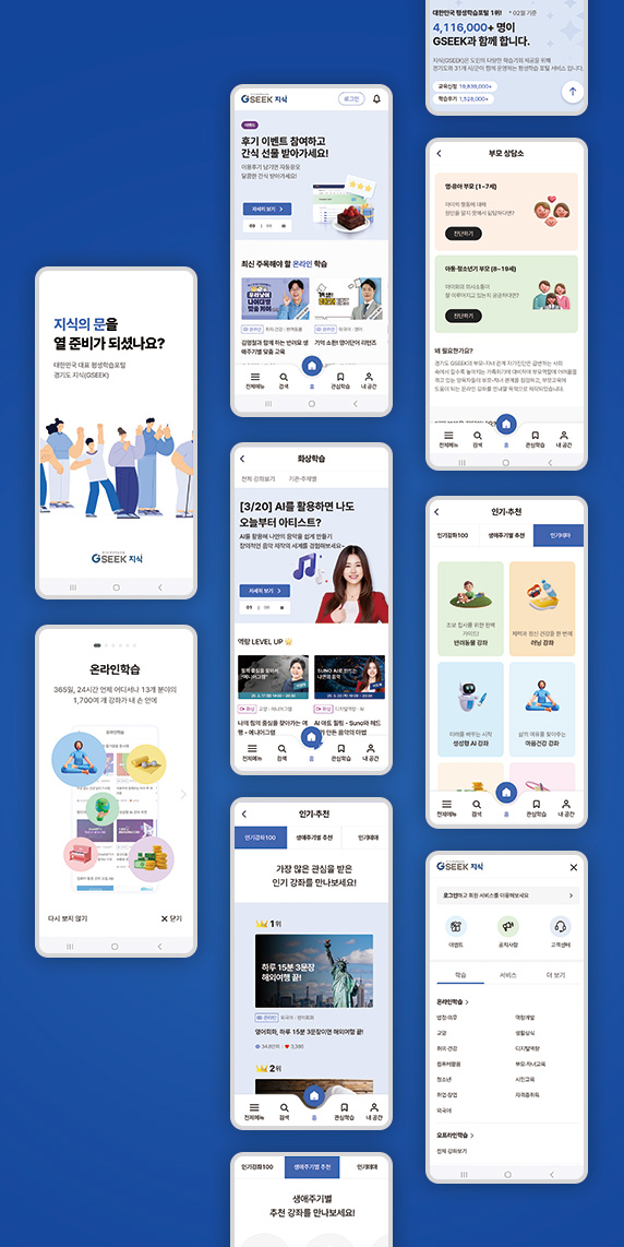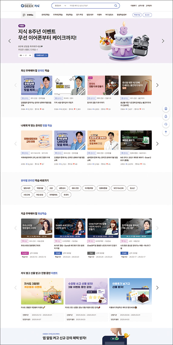 경기도 평생학습포털 지식(GSEEK)은 시공간에 구애받지 않는 디지털 평생학습 플랫폼으로, 경기도와 31개 시군이 공유할 수 있도록 구축됐다. 이 플랫폼은 10대부터 70대까지 다양한 연령대의 도민이 이용하고