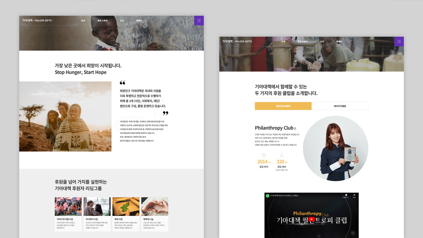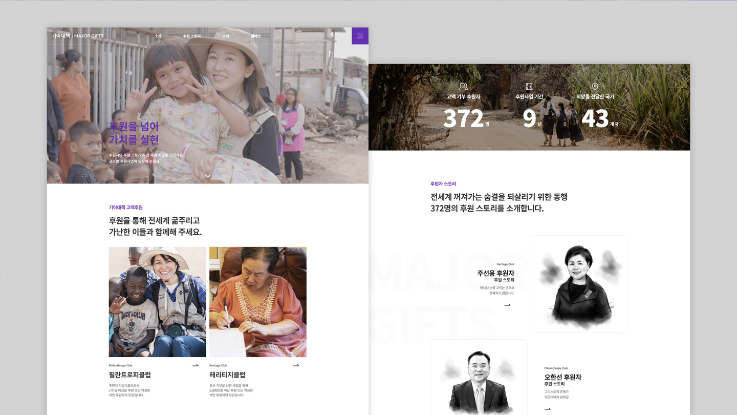 고액/유산 후원자를 위한 소개 웹사이트이며, 기존 2개의 웹사이트를