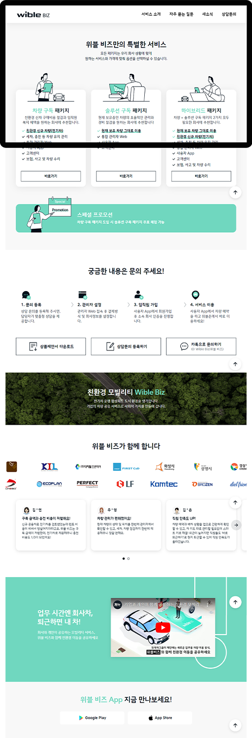 인픽스는 이번 사이트 제작을 통해 위블비즈를 구독함으로 인해 얻을 수 있는 경제성, 편이성 가치를 사용자에게 쉽고 직관적으로 전달하고자 했습니다. 도입을 고려하는 잠재고객들이 사이트에 방문하여 니즈에 따라 적합한 상품을 선택하실 수 있게 패키지별 비교 정보를 제공