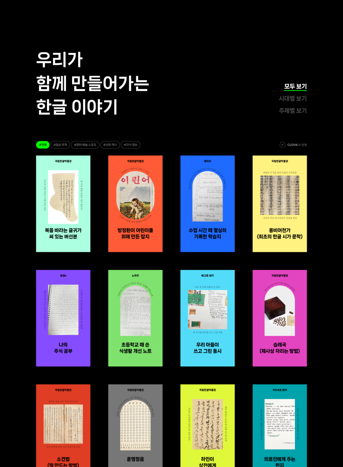 이용자들의 한글 기록과 사연을 소개하는 ‘우리가 함께 만들어가는 한글 이야기’라는 온라인 전시를 선보였습니다.