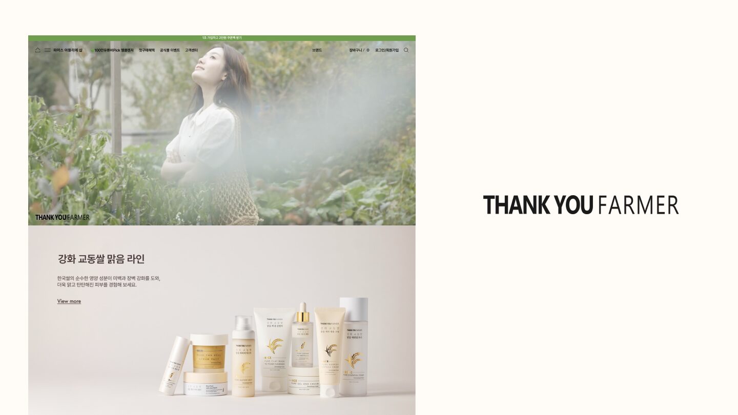 땡큐파머는 자연과 농부의 철학을 담은 화장품 브랜드입니다. 그러나 기존 공식몰은 기능 중심의 단순한 구조에 머물러, 브랜드 고유의 가치와 스토리를 충분히 전달하지 못하고 있었습니다.