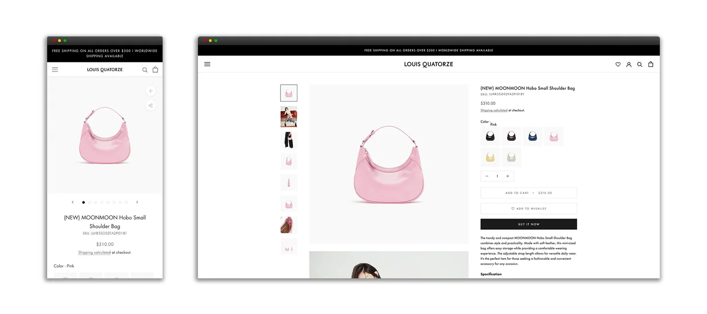 루이까또즈(Louis Quatorze)는 디자인과 품질, 독창성 및 예술성을 지향하는 패션 브랜드로서, 프랑스의 헤리티지와 더불어, 현재 한국의 품질 및 트렌드와 결합하여, 다양한 라인을 전개하고 있습니다. 고유의 필기체 로고를 활용한 헤리티지 라인, L과 Q를 결합한 고유의 모노그램을 활용한 1980 모노그램 라인, 고유의 베르사유의 장미를 상징하는 심볼을 활용한 클래식 라인, L 모양의 L 퀼팅라인 등이 있으며, 최근에는 몬트(Monte) 백, 라라(Lala) 지갑 등의 잇 아이템을 출시하고 있습니다.