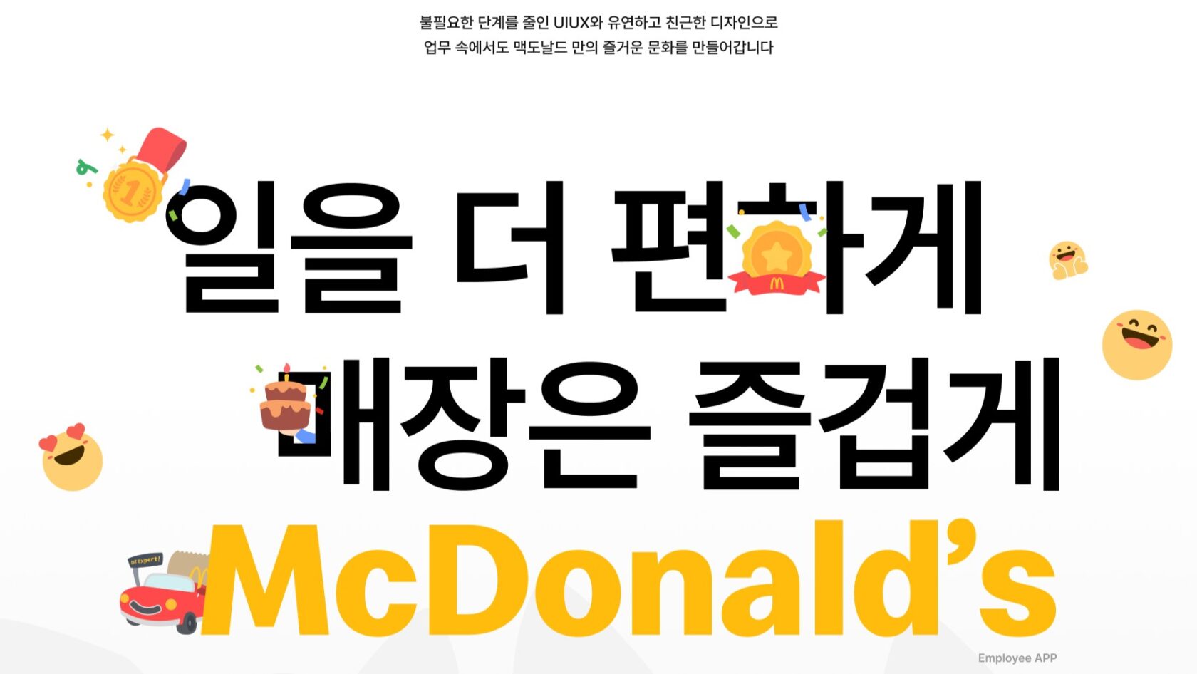 이번에 신규 구축된 맥도날드 임직원 앱 프로젝트는 분산되어 있던 업무 시스템을 하나의 플랫폼으로 통합하고자 하는 고객의 니즈를 반영하여 컨설팅 단계부터 고객과 함께 전략과 서비스를 설계하고 실제 구축까지 그 니즈를 실현해 나가는 통합 컨설팅/구축 프로젝트로 진행하였습니다.목적 / 취지