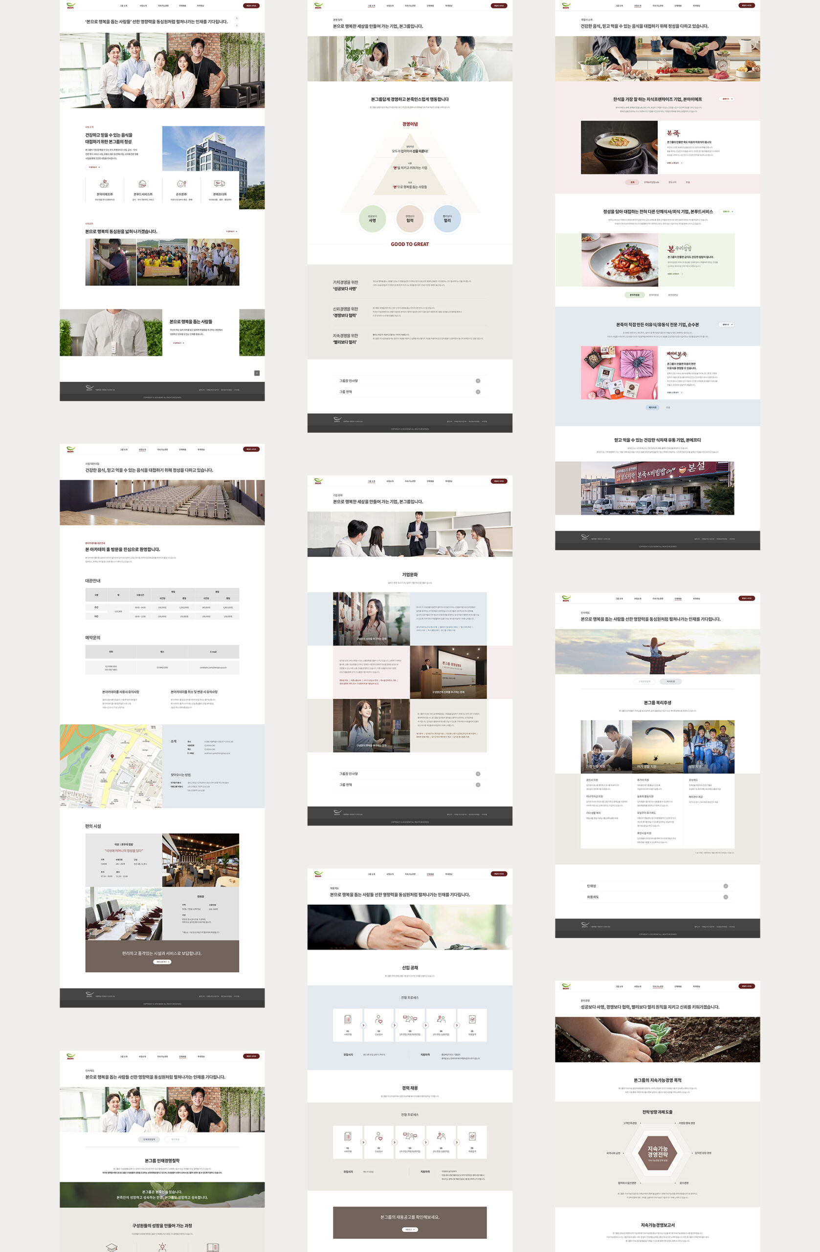 한식 프랜차이즈 선두주자 본그룹은 외식, 푸드서비스, 식자재 유통 등 다양한 사업으로 활약하며 브랜드 위상을 높이고 있습니다. 본그룹 사이트에서는 기업소개와 경영철학, 다양한 계열사 정보를 전달하였고 사용성을 고려한 레이아웃과 기업가치를 표현하는 비주얼로 본그룹의 경쟁력을 제고하고자 하였으며, 브랜드 아이덴티티와 기업 철학 및 역량을 잘 표현한 톤앤매너로 본그룹의 현재와 미래를 담아낸 공간을 만드는 역할에 집중했습니다.