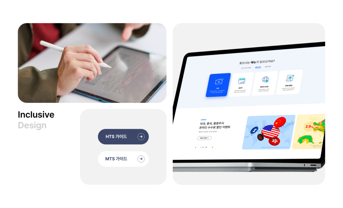 It focuses on convenient and intuitive content so that anyone can easily use complex financial services and delivers each content information intensively by utilizing a single composition that can distinguish between content sections. Take advantage of simple interactions that interest users and engaging friendly UX Writing to guide you to the financial services you want to find.
