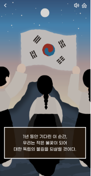 숨은 독립 찾기는 사용자가 삼일절 만세운동을 체험할 수 있는 참여형 게임이다.
