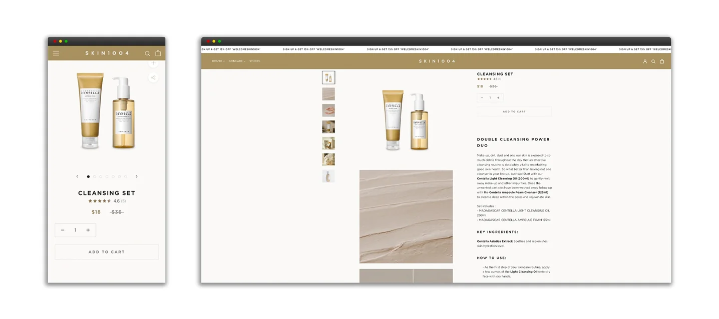 COMPANY 회원이 되어 프로젝트를 등록하세요. 로그인 회원가입 Project 스킨1004 미국 스토어 스킨1004 스토어는 PayPal, 엑심베이 결제 시스템과 자체 배송 시스템이 연동 되어 있습니다. 리뷰앱, 리치 스니펫 최적화, 이메일 마케팅 기능 등이 설정 되어 운영 되고 있습니다. 300cbt 클라이언트. 크레이버코퍼레이션 제작사. 삼백씨비티 론칭일. 2021.01 URL. https://www.skin1004.com/ 이 프로젝트의 하이라이트 더 보기 + 개요 태초의 자연을 전합니다. 특징 스킨1004는 자연의 원료로 피부 본연의 힘을 키워, 피부 본연의 아름다움을 지향하는 자연주의 스킨케어 브랜드입니다. 삼백씨비티의 최신 프로젝트 정보입니다. 세이모온도 글로벌 스토어 코코도르 일본 스토어 헤라 태국 스토어 위글위글 일본 스토어 블루보틀커피 한국 스토어 셀리맥스 미국 스토어 코코도르 미국 스토어 코코도르 중국 스토어 신세계인터내셔날 글로벌 스토어 아모레몰 글로벌 스토어 아누아 미국 스토어 이니스프리 싱가포르 스토어 닥터지 글로벌 스토어 메디큐브 미국 스토어 에이프릴스킨 미국 스토어 라인프렌즈 한국, 글로벌 스토어 루이까또즈 글로벌 스토어 메디힐 미국 스토어 스킨1004 미국 스토어 도도스킨 글로벌 스토어
