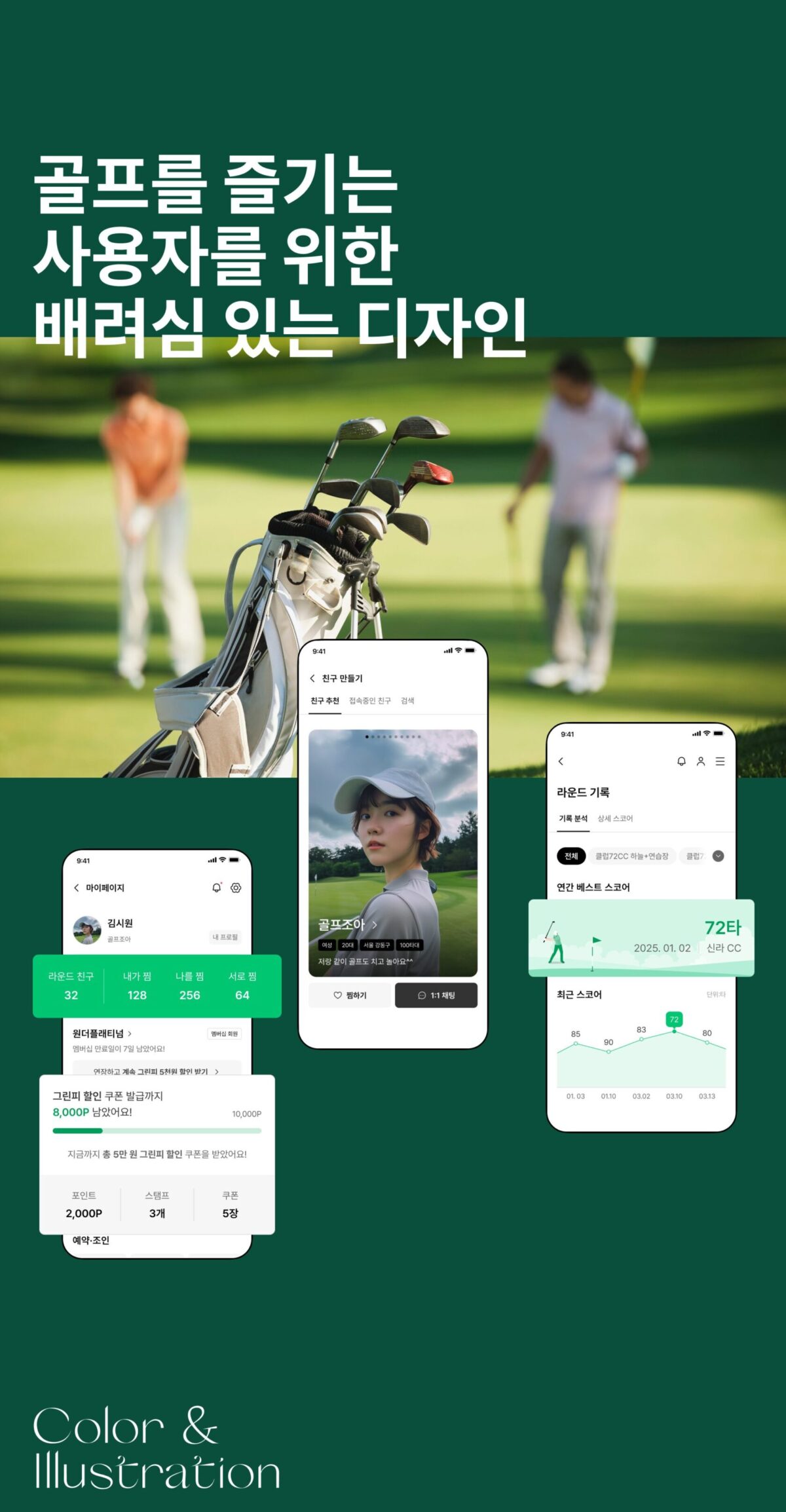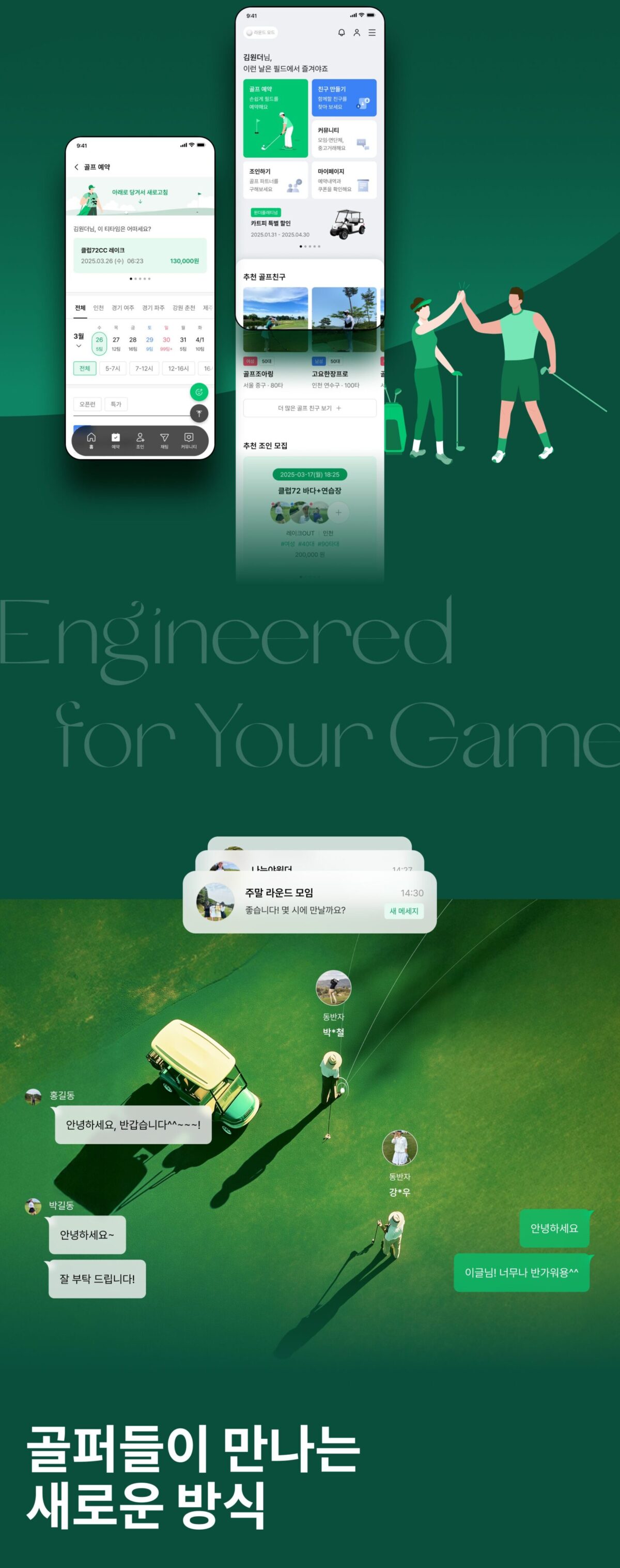 즐거운 라운드를 기대하고 있을 사용자를 고려한 디자인 무드와 비주얼 테크닉을 적용하여 생각했던 것 이상의 특별한 경험을 하도록 도와줍니다.
