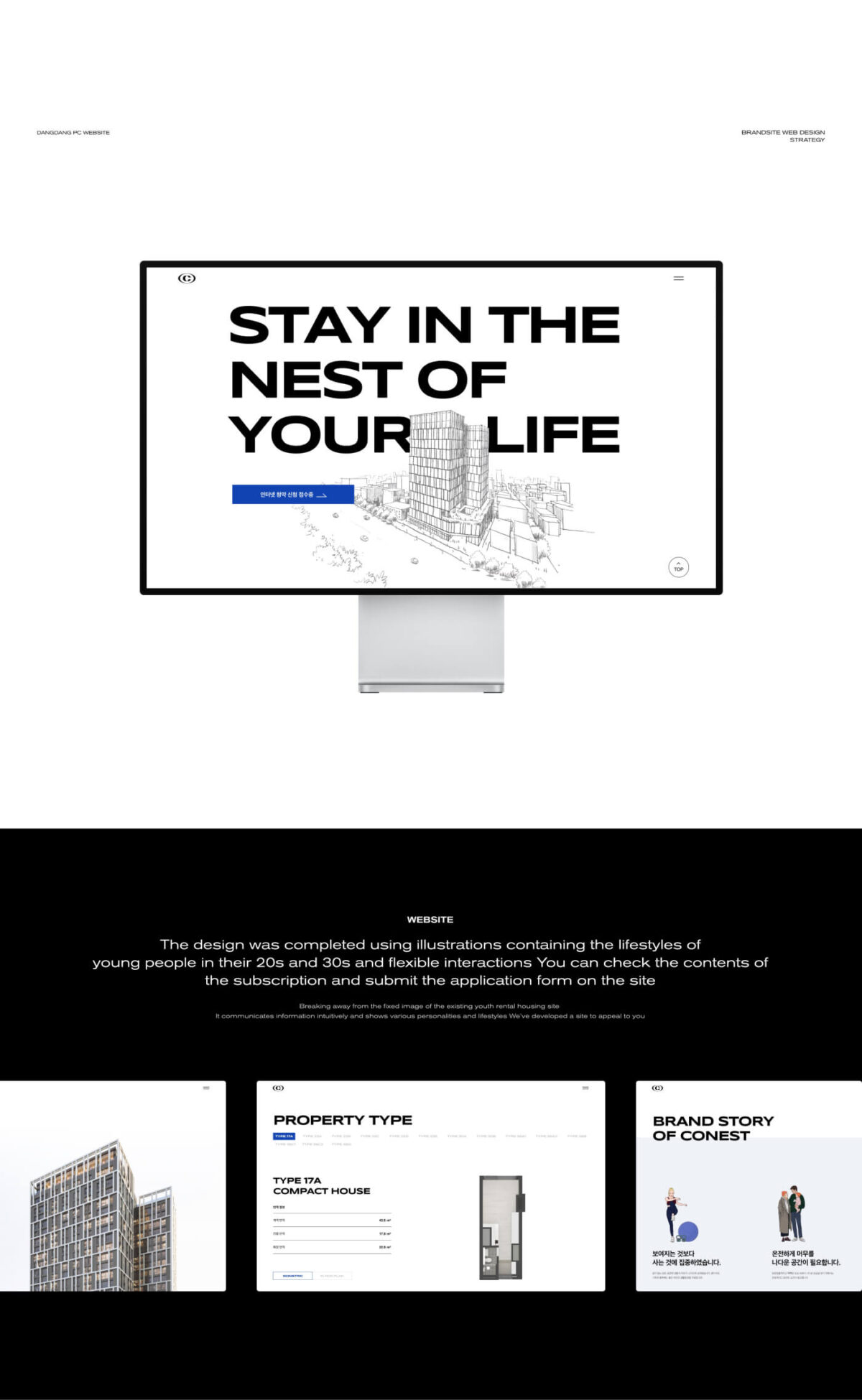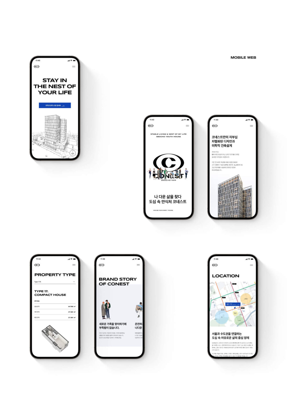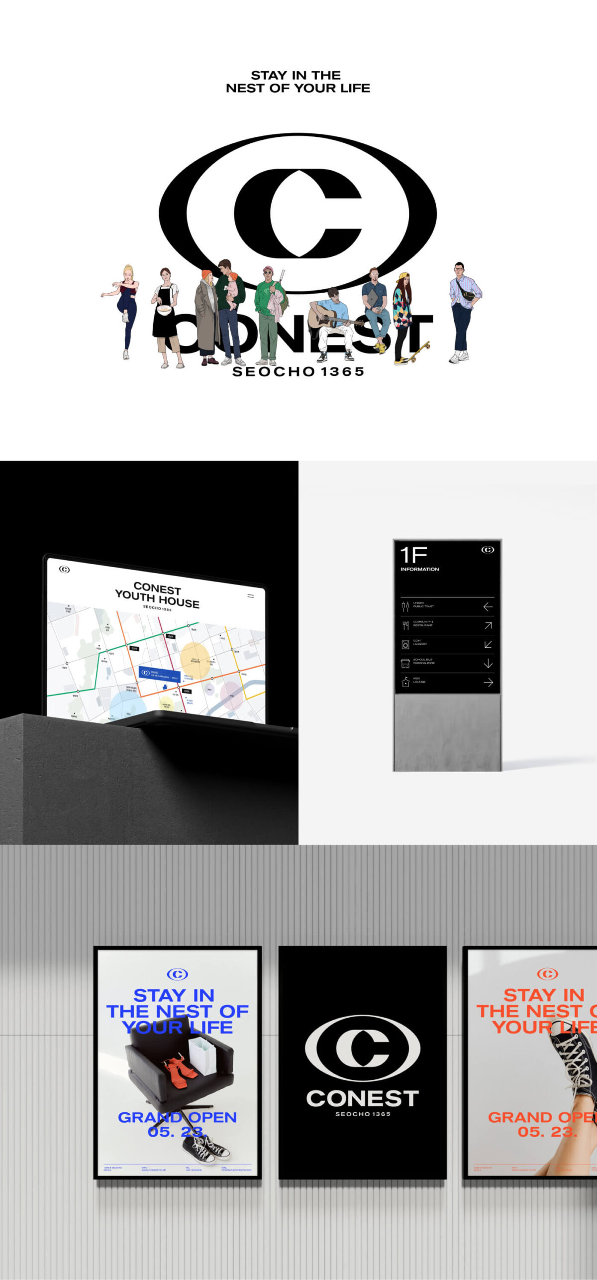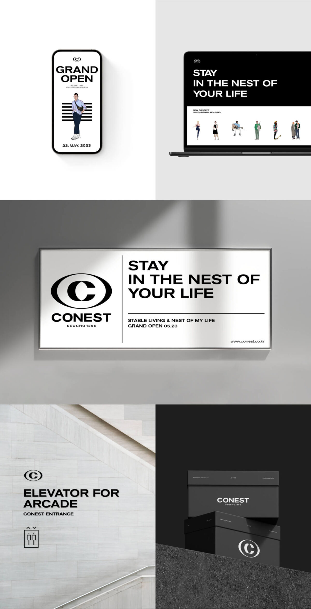 코네스트는 청년들이 안정적인 주거환경에서 자부심을 느끼며 살아갈 수 있도록 돕는 청년임대주택 브랜드입니다. 서울의 경제적 기반이 마련되지 않은 청년들이 안정적이고 합리적인 비용으로 거주할 수 있는 환경을 제공하며, ‘CONFIDENT’와 ‘NEST’의 결합을 통해 청년들의 당당함과 안정감을 표현하는 네이밍을 선택했습니다. 브랜드 아이덴티티는 로고부터 시작해 청년들이 자랑스러운 삶을 살 수 있도록 돕는 메시지를 강조하며, 임대주택에 대한 부정적인 인식을 세련되고 매력적인 이미지로 변화시켰습니다.
