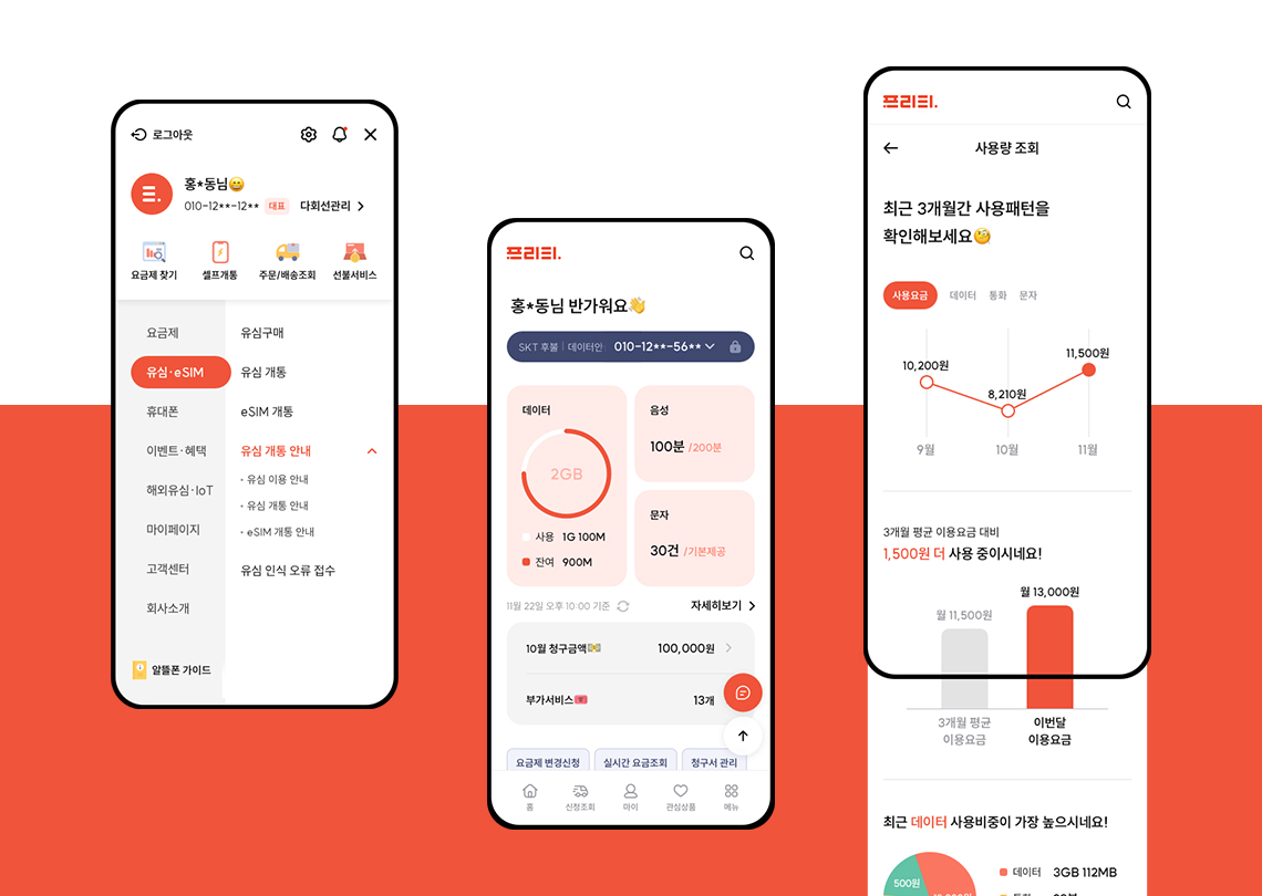 프리텔레콤 ‘프리티 온라인 플랫폼’은 사용자가 모든 서비스에 손쉽게 접근할 수 있는 ‘온라인 셀프 매장’을 목표로 제작됐다. 국내 알뜰폰 시장의 성장과 팬데믹 시대로 인한 비대면 개통이 증가하면서 최근 온라인 알뜰폰 사용자는 비약적으로 증가했다. 이렇게 증가한 만큼 사용자들의 니즈는 다양해졌고 이러한 니즈는 곧바로 고객센터 문의로 이어지게 된다. 이렇게 넘치는 고객문의는 업계 최대 수준의 회원을 보유하고 있는 프리티에게 항상 숙제일 수밖에 없다. 이번 프리티 리뉴얼은 이를 해결하기 위해 사용자에게 이해하기 쉬운 안내를 지속적으로 제공하고 비대면만으로도 대부분의 고객이 원하는 요구사항을 해결할 수 있도록 하는 역할을 수행하고 있다.