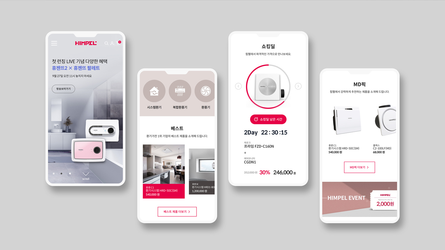 COMPANY 회원이 되어 프로젝트를 등록하세요. 로그인 회원가입 Project 힘펠몰 B2C의 매출증대를 위해 쇼킹딜 / 라이브커머스 연동 그리고 카테고리 재 정립 등 다양한 판매 전략 기능을 개발하고, 쇼핑 카테고리와 콘텐츠의 명확한 구분으로 사용자 편의성을 강화한 반응형 쇼핑몰로 개발 DESIGNPOP 클라이언트. 힘펠 제작사. 디자인팝 론칭일. 2024.09 URL. https://www.himpelmall.com 이 프로젝트의 하이라이트 더 보기 + 개요 B2C의 매출증대를 위해 쇼킹딜 / 라이브커머스 연동 그리고 카테고리 재 정립 등 다양한 판매 전략 기능을 개발하고, 쇼핑 카테고리와 콘텐츠의 명확한 구분으로 사용자 편의성을 강화한 반응형 쇼핑몰로 개발 목적 / 취지 너무 느린 쇼핑몰로 인하여 힘펠 브랜딩 및 매출에 많이 영향을 주고 있어 쇼핑몰의 빠른 접속과 다양한 온라인 판매전략을 통해 매출을 증대할 수 있는 쇼핑몰 특징 라이브 커머스를 도입하여 자사몰 자체에서도 라이브 커머스 기능을 구현하고 있으며, 기업 규모에 맞는 비주얼을 유지 관리할 수 있는 쇼핑몰 개발 디자인팝의 최신 프로젝트 정보입니다. 힘펠몰 기아대책 MAJOR GIFTS SK signet 반응형 웹사이트 반야트리 해운대 부산 경일감정평가법인 아르네코리아 리솜리조트 통합 웹사이트 에스더몰