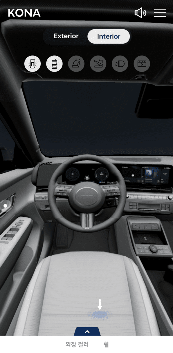 유저가 가지고 있는 디바이스를 통해 코나를 체험한다는 의미로 ‘All New Kona Digital Studio’로 네이밍 하였고 가상의 코나 스튜디오를 만들기위해 Web GL 기술을 통한 인터랙션을 설계하였습니다. 동시에 새로운 기술 속에서 유저의 경험과 감성을 자연스럽게 전달하는 것에 중점을 두었습니다. 그리고 다양한 3D 카메라를 통해 코나의 새로운 기능을 설명할 수 있도록 하였습니다.