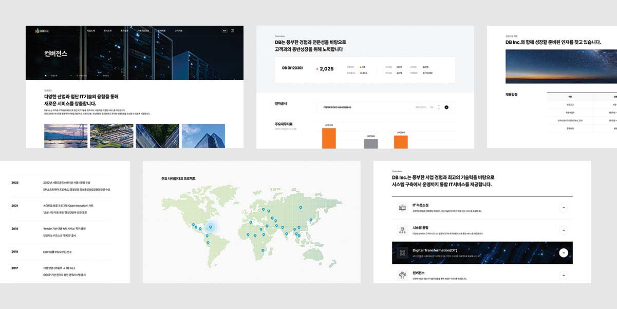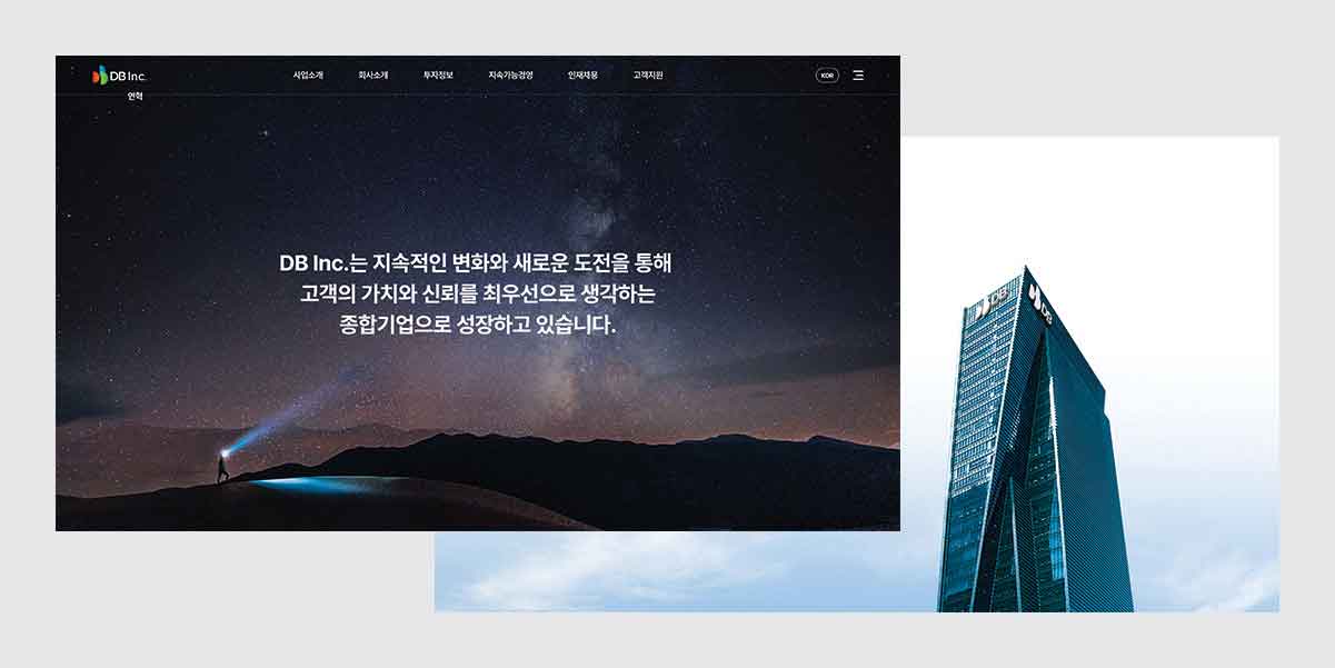 DB Inc.는 주력 사업인 IT 서비스 분야에서 IT 아웃소싱과 SI, 글로벌 사업 등 다양한 포트폴리오를 갖고 있다. 기존 웹사이트가 유지되는 동안 고도화되고 축적된 사업 실적도 이번 개편된 웹사이트에서 한층 강조해 전달하고 있다.