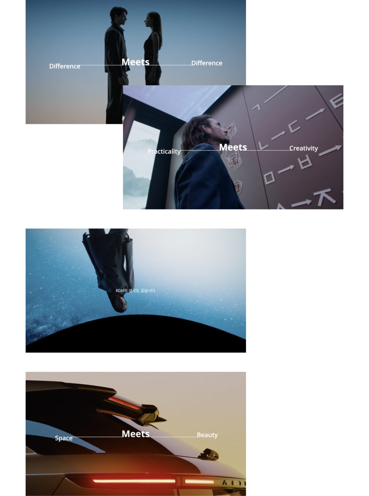 KGM의 브랜드 전략인 ‘실용적 창의성(Practical Creativity)’을 누구나 쉽게 이해할 수 있도록, 전 세계인이 공감할 수 있는 백신과 한글을 예시로 활용해 브랜드 메시지를 시각적으로 전달했습니다.