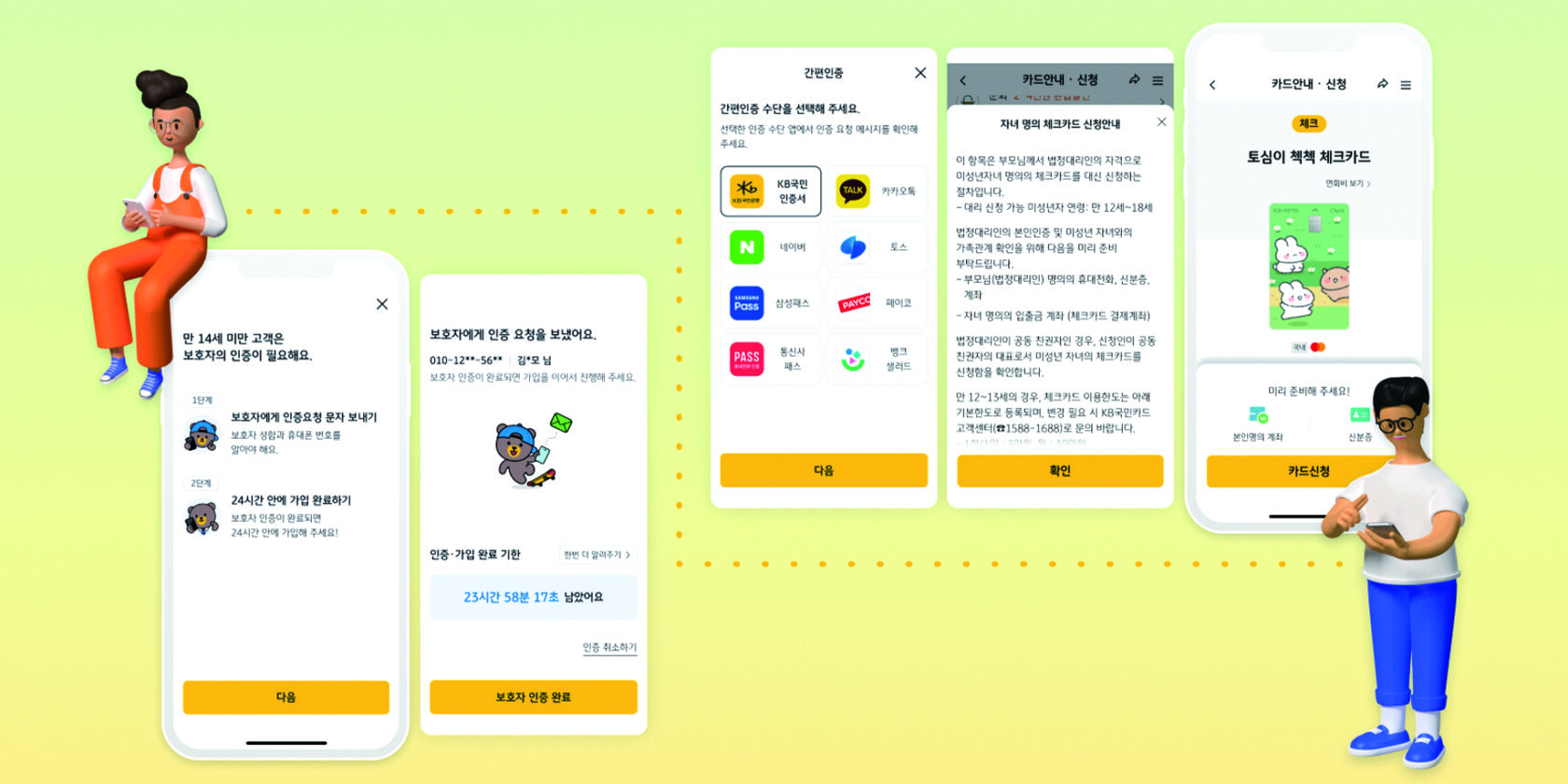 오프라인 서류 확인 절차 없이 온라인 인증만으로 회원가입이 가능하게 해, 복잡한 절차를 줄이고 사용자 편의를 극대화했다. 법정대리인의 동의 프로세스 신설에 따라 미성년자의 KB Pay 가입 및 체크카드 신청이 비대면으로 가능하도록 개발했다. 또한 KB Pay에 가입한 자녀가 직접 앱을 통해 체크카드 내역을 확인할 수 있으며 편의점 등에서 QR·바코드 결제가 가능하도록 구현했다. 저연령층에서부터 고연령층까지 KB Pay를 원활하게 사용할 수 있도록 다양한 텍스트 크기 모드를 추가해 사용자 경험을 개선했다.