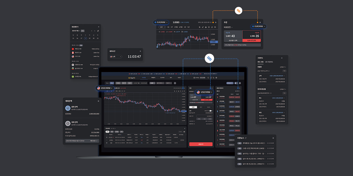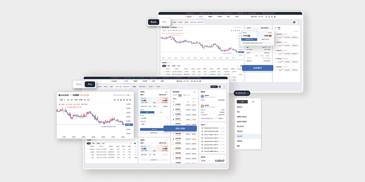 이번 개편을 통해 FX 거래가 복잡하고 제한적이라는 인식을 깨고, 누구나 언제 어디서나 쉽게 FX 거래에 참여할 수 있는 새로운 기준을 제시하고자 했다. 개인부터 기업, 전문가까지 모두에게 유용하고 긍정적인 거래 경험을 제공하기 위해 사용자 유형별 트레이딩 플로우를 세분화하고, 각 사용자의 행동 패턴과 선호에 최적화된 설계를 적용했다. 또한 거래 과정에 필요한 정보와 기능을 하나의 화면에 통합 제공해 보다 효율적인 트레이딩 환경을 조성하고자 했다. 복잡한 외환 정보를 시각화하고, 게이미피케이션 요소를 더해 보다 쉽고 흥미로운 트레이딩 경험을 구현했다.
