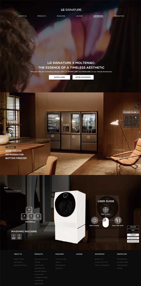 웹사이트는 LG SIGNATURE만의 ‘화려한 심플’을 절제된 UI/UX 안에서 유연하게 드러냈다. 인위적이고 정형화된 표현은 지양하고브랜드를 쉽게 이해하고 공감할 수 있도록 직관적으로 구현했다. 특히 제품 비주얼은 제품의 특징이 더욱 강조되는 과감한 방식으로 연출했다.숨바꼭질 테마의 브랜드 필름을 인터랙티브하게 재구성한 버추얼 쇼룸은 360˚ 3D로 다양한 각도에서 디자인을 감상하고, 혁신적이고 편리한 기능을 직관적으로 느끼도록 표현했다.