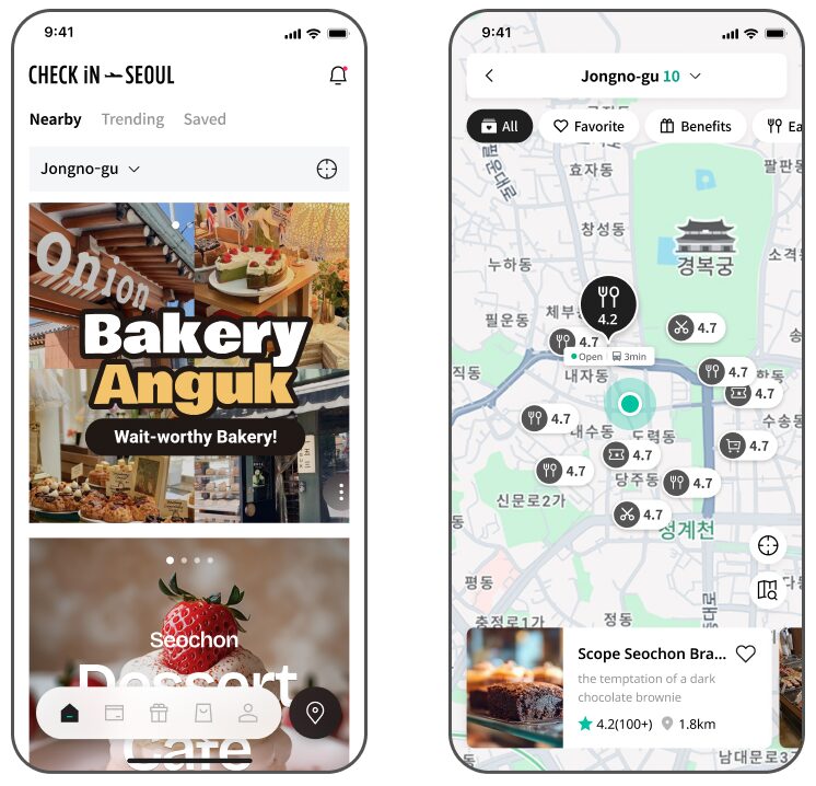 사용자의 현재 위치와 동선을 고려해, 사용자 취향의 가맹점 정보와 실시간 혜택을 제공합니다.