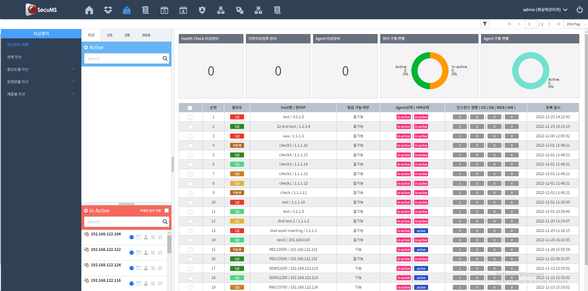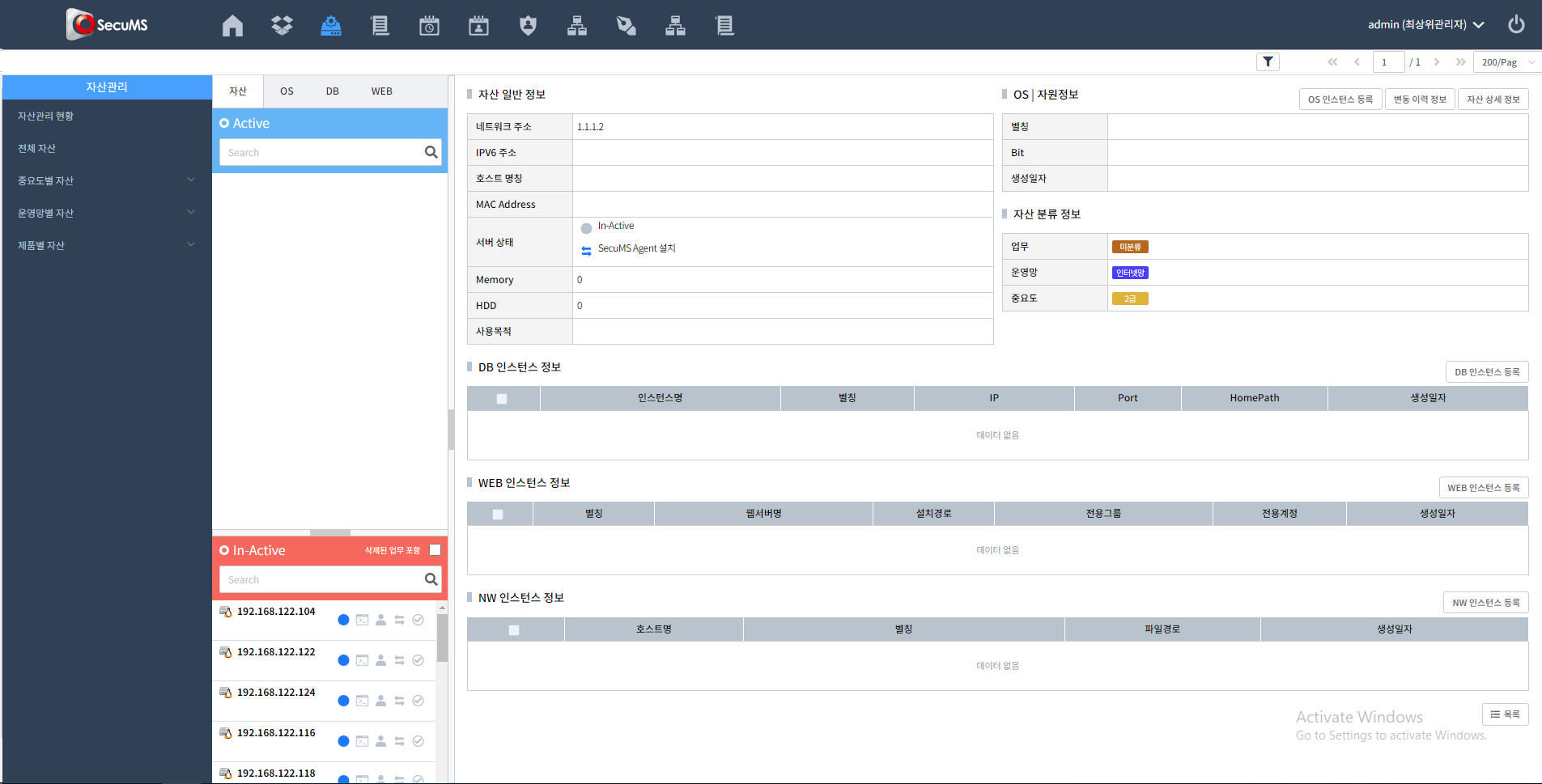 SecuMS는 시스템 보안 취약점을 자동으로 점검하고 발견된 문제들에 대한 해결 방법을 제공하여 서버 별 취약점 현황의 일괄 파악을 통해 보안 수준 상시 모니터링을 할 수 있는 상시 보안 취약점 관리 솔루션입니다.