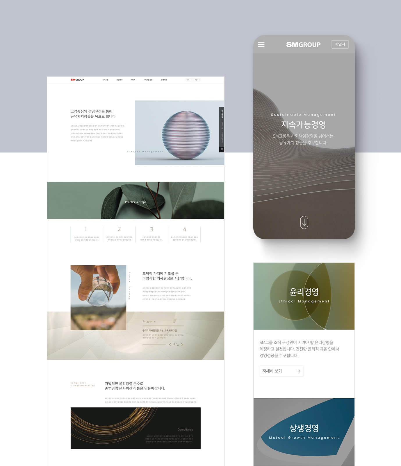 또한 그룹 뿐만 아니라 계열사에서도 동일한 디자인 아이덴티티가 유지될 수 있도록 웹디자인 가이드라인도 제작하였다. 주요 콘텐츠로는 계열사 소개, 채용 정보, 그룹 소식, 지속 가능 경영 등을 제공하고 있다