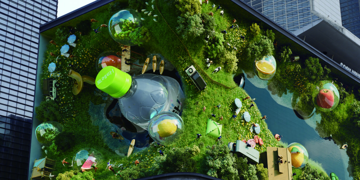 시원한 물의 파장과 살아 숨 쉬는 대자연의 모습을 입체적으로 구현한 초대형 작품으로써, 단순히 새로운 패키지를 홍보하는 것을 넘어 시각적으로 신선한 ‘토레타!’만의 풍경을 도심에 선보이며 음료를 마셨을 때의 청량감과 싱그러움, 수분 충전의 경험을 담아냈다.