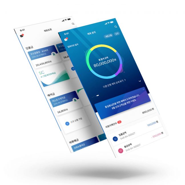 ‘이게 정말 은행 앱이라고?’ SC제일은행 모바일뱅킹 앱을 마주하고 가장 먼저 했던 생각이다. 은행 앱이라 하면 으레 머릿속에 그려지는 비주얼이 있는데, 그 공식을 깨고 새로 개편된 모습은 마치 어느 핀테크 업체에서 내놓은 생활 관리 서비스라 해도 믿을 정도였다. 기존의 모바일뱅킹 앱과 셀프뱅크 앱을 통합함에 따라 이체, 조회 및 금융상품 가입까지 하나의 앱에서 풀뱅킹(Full banking) 서비스를 이용할 수 있는데, 어느 한 곳 딱딱하거나 복잡한 부분이 없다. 군더더기 없는 페이지에서 다양한 그래프 및 차트까지, 은행스럽지 않은(?) UI가 어려운 금융 서비스도 쉽고 간편하게 사용할 수 있도록 길잡이 역할을 해주기 때문이다.