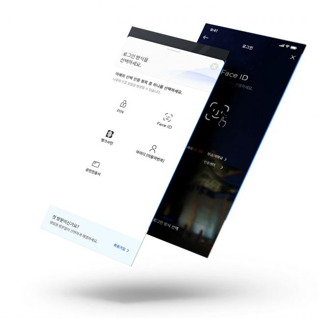 · 빠르고 안전한 디지털 인증으로 간편한 로그인 (간편번호, Face, 지문, 홍채 인증 등) 안면, 홍채, 지문 등 보안성이 강화되고 유효기간이 3년에 달하는 생체 인증 또는 간편 비밀번호만으로 간편하게 로그인!