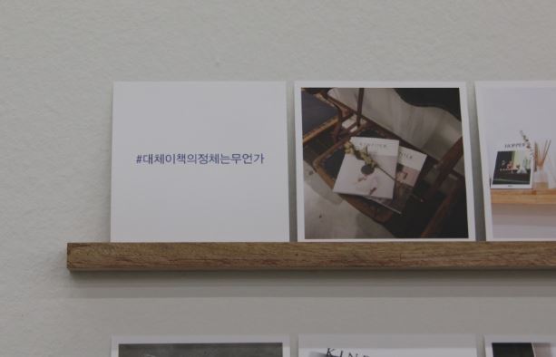 해시태그로 대체한 작품 설명이 인상적이다. 언뜻 봐도 킨포크와 인스타그램에 대한 이미혜 작가의 태도가 고스란히 드러난다. 그가 보기에 킨포크는 “#감성각잡아주는” “#인스타감성의아이콘”이며 “#호텔같은집”이나 “#카페같은집” 또는 “#외국같은집”의 필수 요소다. “#인테리어의완성은킨포크”이기 때문에 “#킨포크없는” “#카페는없다”. “#대체이책의정체는무엇인가”라는 물음으로 시작된 작품은 킨포크를 내세웠지만, 결국 “#좋아요자본주의”라는 큰 맥락을 비판하는 쪽으로 흐른다.