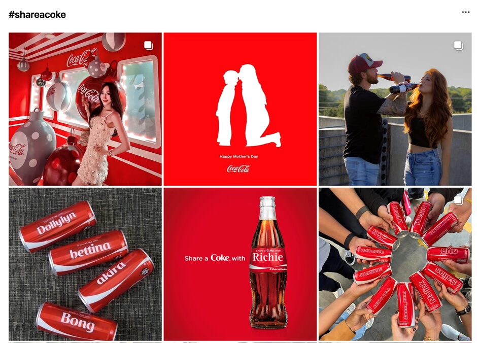 또 다른 예로는 코카콜라(Coca-Cola)의 #ShareACoke 캠페인이 있습니다. 사용자 이름이 새겨진 맞춤형 병을 SNS에 공유하도록 유도한 이 캠페인은, 세계 각국에서 폭넓은 참여를 이끌며 UGC 확산의 대표적인 성공 사례로 평가받고 있습니다.