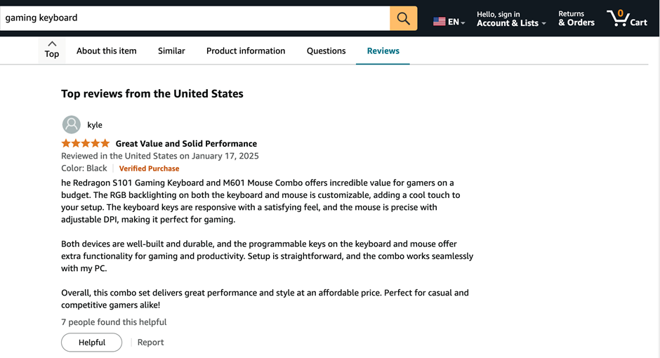 또한 아마존(Amazon)은 리뷰 시스템을 고도화하여, 리뷰에 실제 제품 사진이나 동영상을 첨부할 수 있게 하였고, ‘베스트 리뷰어’ 프로그램을 통해 우수 리뷰어에게 리워드를 제공하고 있습니다.