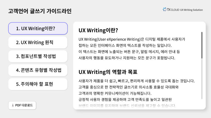 UX 라이팅 가이드를 더 효율적으로 탐색하기 위한 다양한 레퍼런스 기능도 있다.