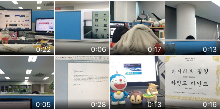 기자는 마감일지뿐만 아니라, 일상에서 담았던 좋아하는 소리들을 모아놓거나 동료들과 함께한 술자리를 찍어 재밌게 연출하기도 했다. 굳이, 널리 보여지지 않아도 자기만족 혹은 함께했던 사람들과의 추억을 쌓기 위해 말이다. 사진첩에 짤막하게 쌓아두었던 영상들을 꺼내 모아보는 것도 좋은 일이다. 그때의 추억들에 지금을 버틸 힘이 나기도 하니까.